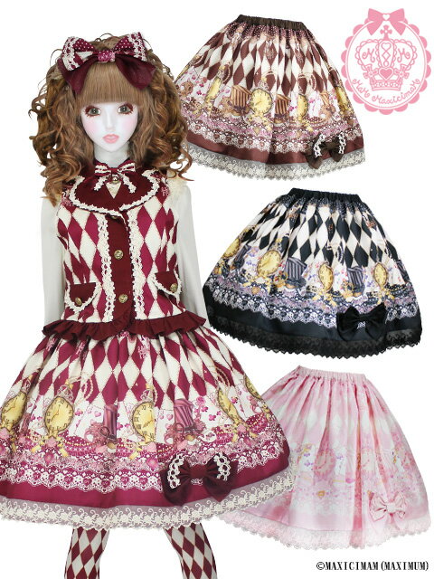黒猫アリスのマジカル☆ダイヤ柄の不思議な懐中時計スカート 8W5001【マキシマム/ロリータ/かわいい】