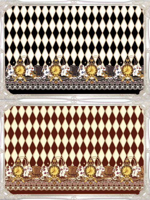 タイツやオーバーニーソックスではダイヤ柄をメインにデザインしましたので、オリジナル生地では 懐中時計をメインにしコーディネートしやすくデザインしました☆