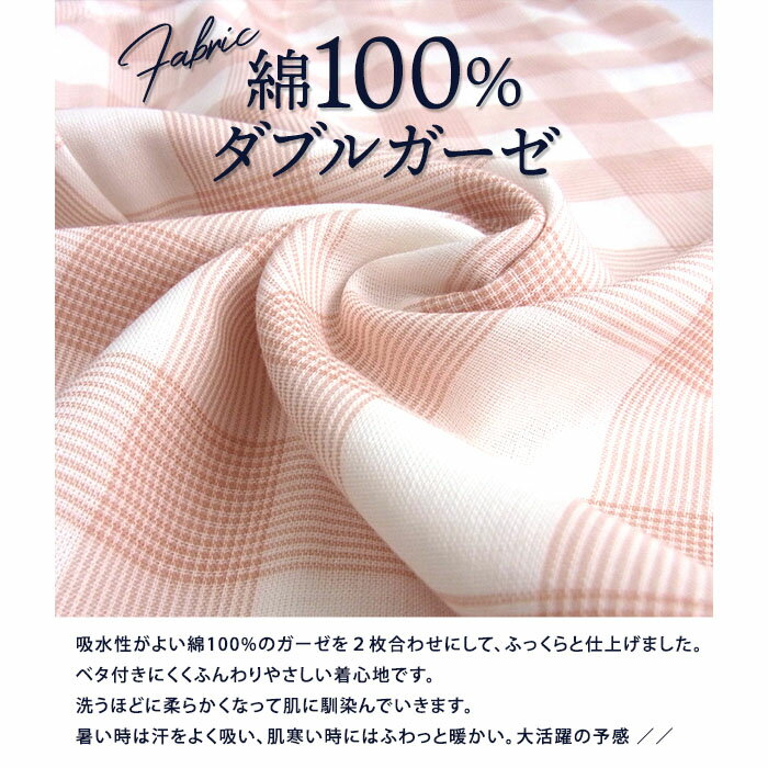 吸水性がよい綿100%のガーゼを2枚合わせにして、ふっくらと仕上げました。