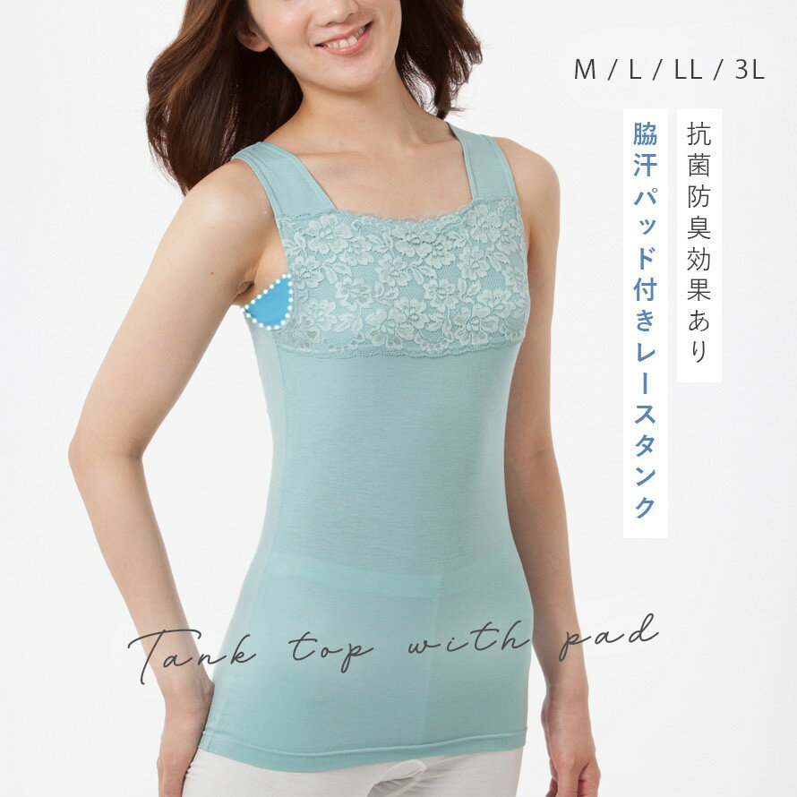 【最大10%OFFクーポン】汗取りインナー 汗取りパッド付インナー 脇汗インナー レディース キャミソール タンクトップ レディース 脇汗パッド ストレッチ フィット わき汗パッド付き さらりやわらか綿混レース付タンクトップ 汗ジミ対策 汗染み防止 大きいサイズ 3Lまで メ